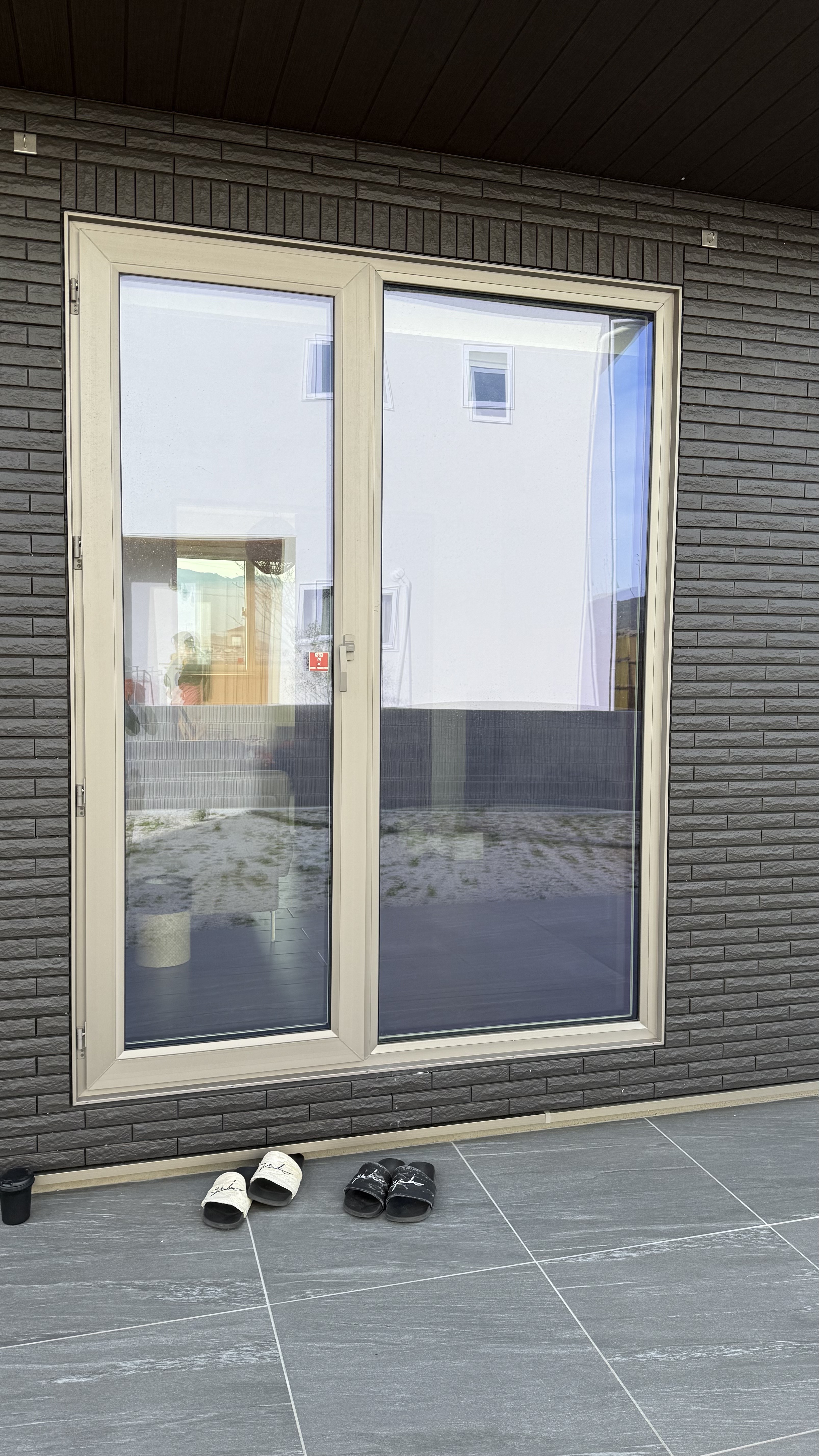 隣家の玄関が見えるリビングの掃き出し窓2枚1組